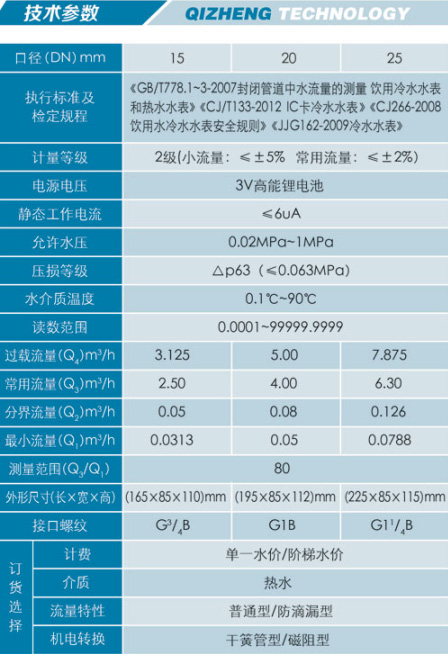 產(chǎn)品概述: 該表用于計(jì)量管道中的熱水水流量,產(chǎn)品符臺(tái)J B/T8802 —1998和CJ/T133—2012標(biāo)準(zhǔn),該表是采用 的低功耗一體--化集成微控制 器技術(shù)、脈沖水表技術(shù)等優(yōu)化設(shè)計(jì)的機(jī)型,是新一代的智能熱水計(jì)量設(shè)備。按消費(fèi)量計(jì)費(fèi),實(shí)現(xiàn)公平交易,杜絕濫用浪費(fèi),有利目標(biāo)成本管理,推動(dòng)資源合理配置、節(jié)約用水。特別適用于小區(qū)居民、公 寓用戶、樓宇辦公、企事業(yè)單位等場所的熱水計(jì)量及控制。